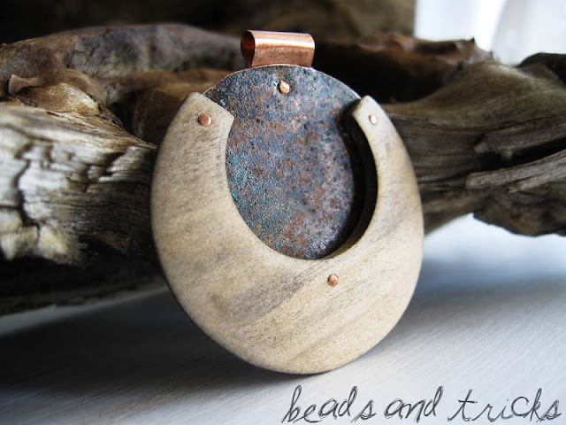 Me li avete visti usare spesso ultimamente e preferibilmente insieme. Per quanto ami il rame e il suo colore, specie patinato a dovere, ancora di più mi intriga la possibilità di usare materiali diversi all'interno dello stesso progetto, e l'argento e le perle regalano al rame quel tocco di luce in più che gli manca, impreziosendolo.